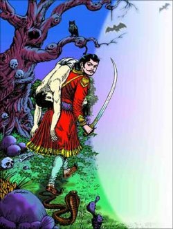 “ಹಹಹಹಹ...ನೀನು ಮೌನ ಮುರಿದೆ...ಇಗೋ ನಾನು ಹೊರಟೆ” ಎಂದು ಹಾರುತ್ತಾ ಭೇತಾಳ ಮತ್ತೊಂದು ನೇತಾಡುವ ಜಾಗವನ್ನು ಅರಸಿ ಮಾಯವಾಯಿತು.